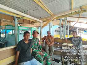 Serda Fero A.Duha Babinsa Koramil 12/Batang Tuaka Komsos dengan Aparat desa