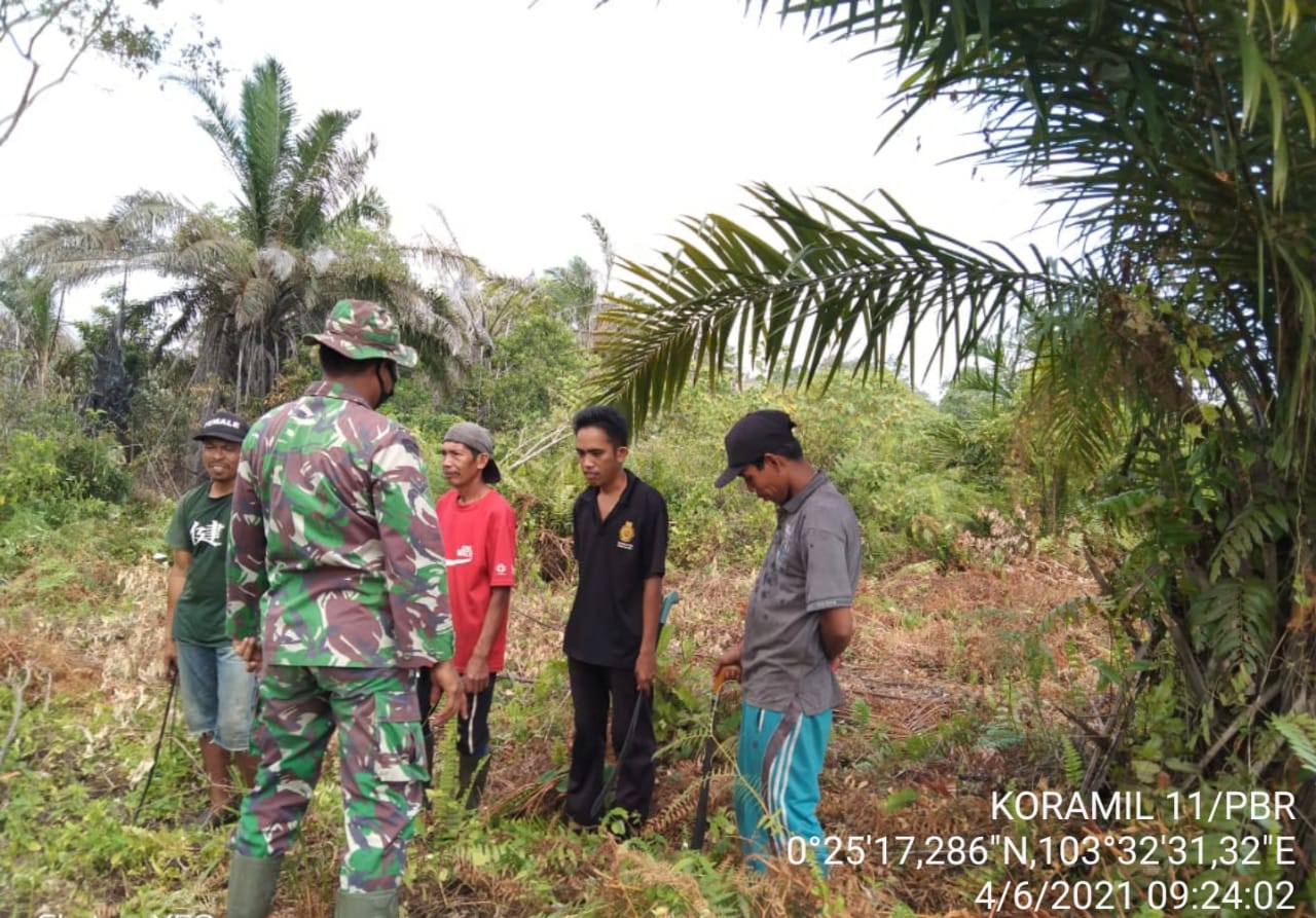 Seperti hari Babinsa Koramil 11/PBR Sertu Arif D Melaksanakan kegiatan patroli dan sosialisasi karhutla Terkosentrasi Jumat (04/06/2021)