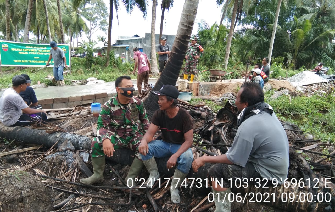 SERIBUPARITNEWS.COM, PULAUBURUNG - Babinsa Koramil 11/Pulau Burung Kodim 0314/Inhil  Serda  Siswanto melaksanakan kegiatan Komsos kepada warga disela kegiatan karya bakti TNI Selasa (01/05/2021)