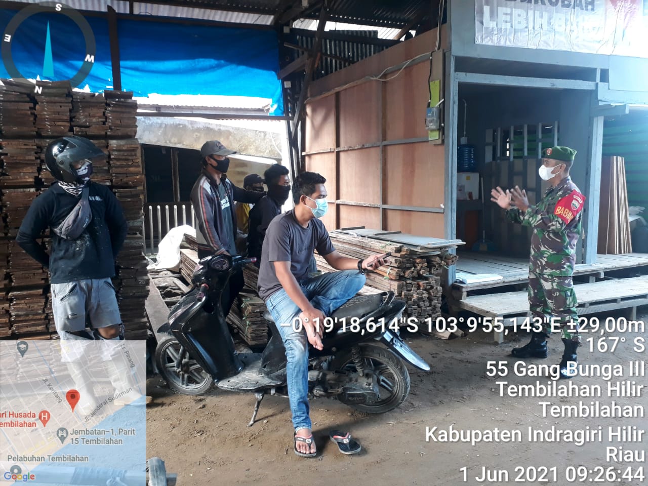 Babinsa Koramil 01/Tembilahan Kodim 0314/Inhil  Sertu Zulpahri melaksanakan Komsos dengan Bapak Udon pemilik bangsal di Kelurahan Tembilahan Hilir Selasa (01/06/2021)