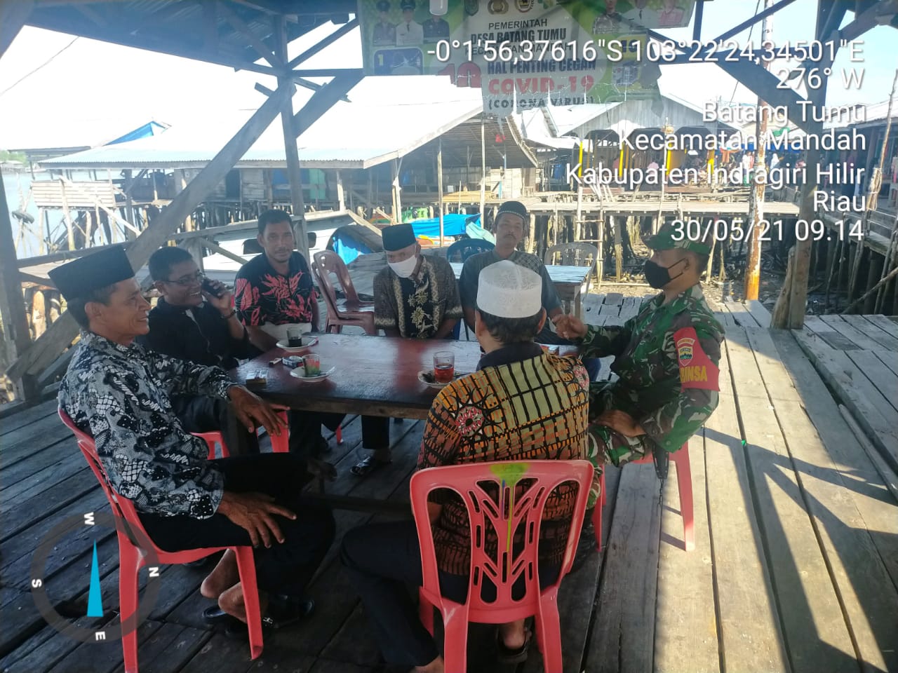 SERIBUPARITNEWS.COM, MANDAH - Babinsa Koramil 08/Mandah Kodim 0314/Inhil Serda Tulus L.Gaol melaksanakan komsos bersama tokoh masyarakat Minggu (30/05/2021)
