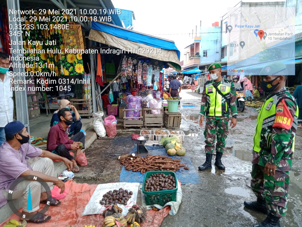 SERIBUPARITNEWS.COM, TEMBILAHANHULU - Penegakkan disiplin terus dilanjutkan hari ini ke Pasar Kayu Jati Kecamatan Tembilahan Hulu Sabtu  (29/05/2021)