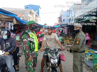 SERIBUPARITNEWS.COM, TEMBILAHANHULU - Penegakkan disiplin terus dilanjutkan hari ini ke Pasar Kayu Jati Kecamatan Tembilahan Hulu Senin  (24/05/2021)