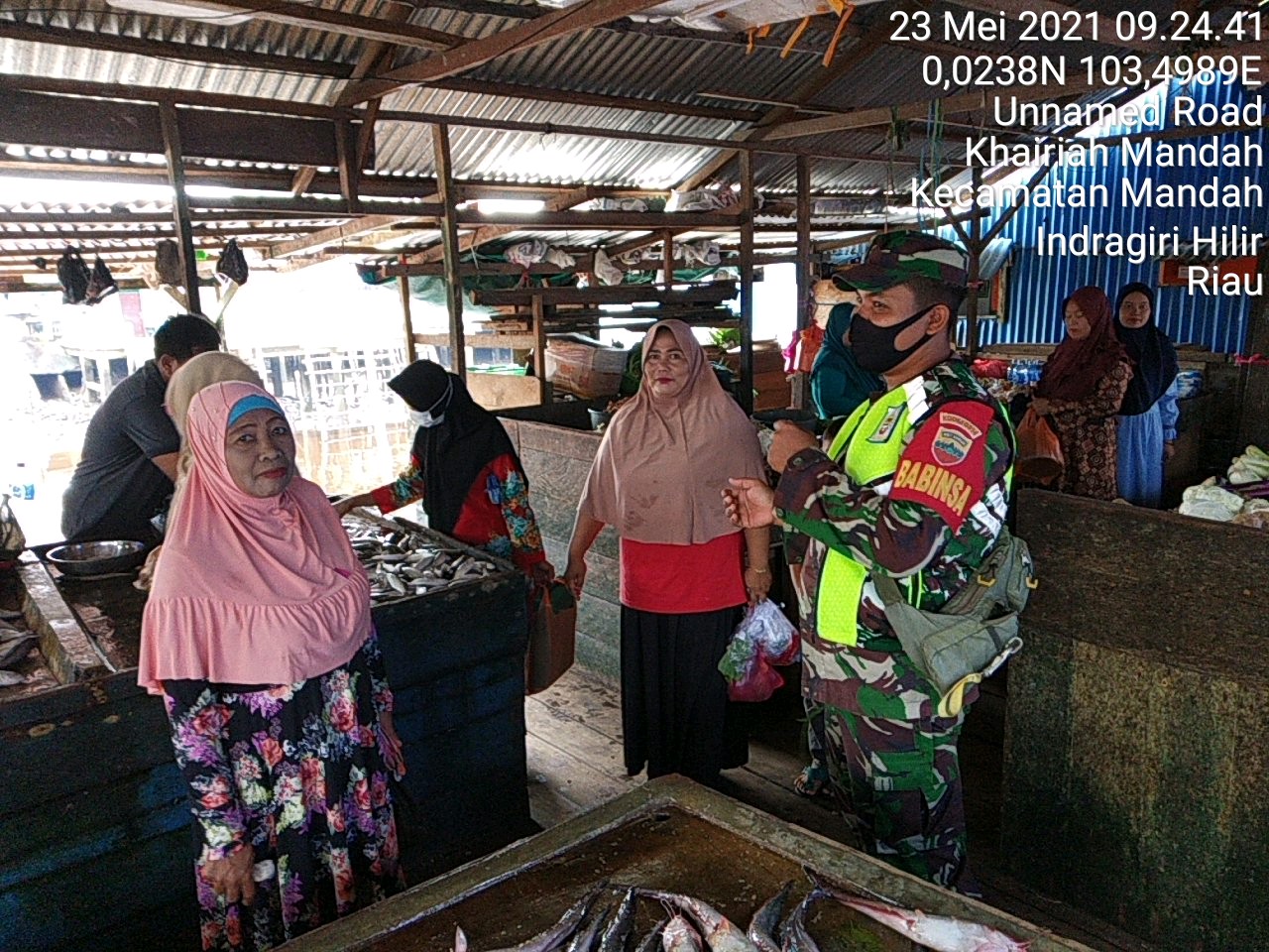 Babinsa tak segan menegur par pengunjung dan pedagang yang tidak memakai masker