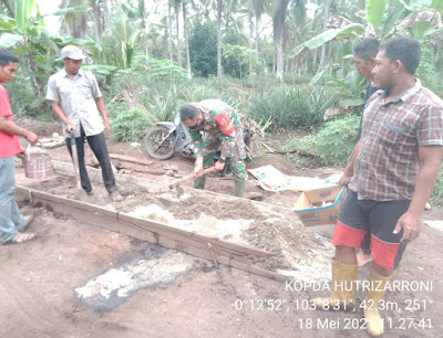 Kopda Hutrizarroni Babinsa Koramil 05/Gas Kodim 0314/Inhil Bersama Warga Semenisasi Jalan
