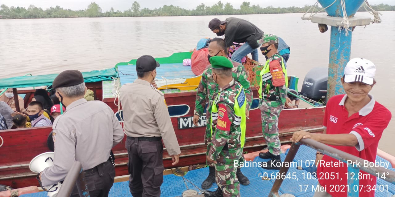 SERIBUPARITNEWS.COM,Pulau Kijang," – Dalam menekan angka penularan Covid-19 di Wilayah Babinsa Koramil 07/Reteh, bersama team Gugus tugas Kecamatan Reteh  melakukan pemantauan Pelabuhan dan pasar tradisional,Senin, (17/5/21).