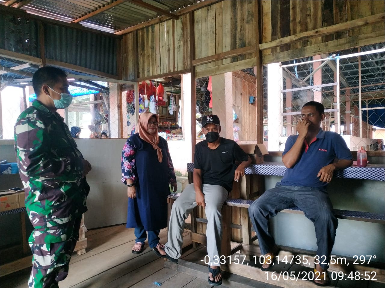 SERIBUPARITNEWS.COM,TEMBILAHAN - Masih dalam suasana Lebaran,  Babinsa Koramil 01/Tembilahan Kodim 0314/Inhil  Pelda Indra Mukri melaksanakan Komsos dengan Para Pedagang Pasar Kayu Jati sekaligus silaturahmi masih dalam suasana lebaran Minggu (16/05/2021)