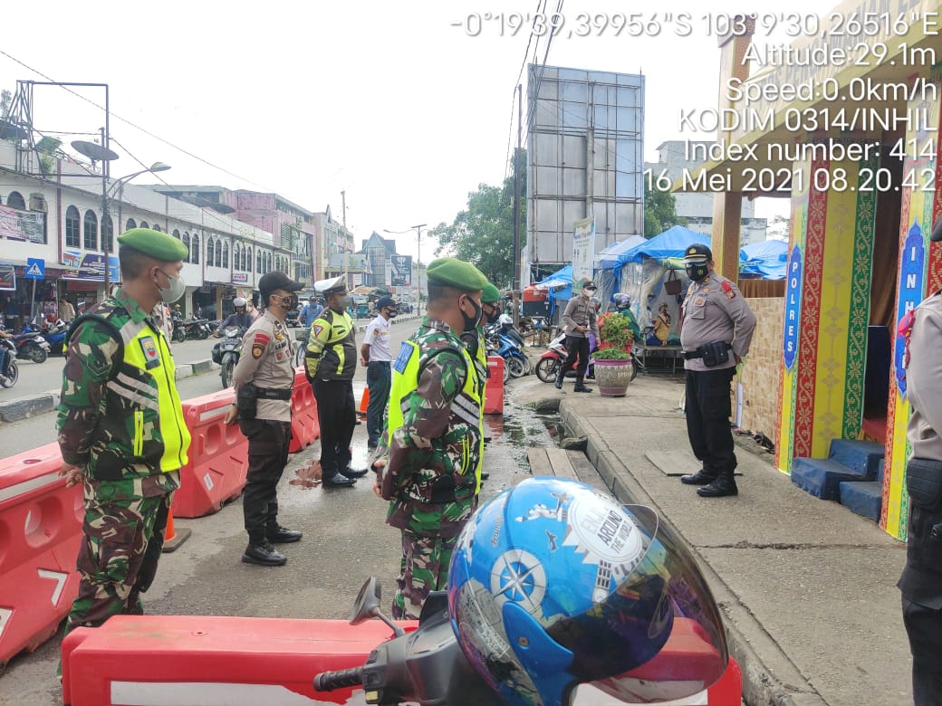 Pengamanan di pos air mancur dalam rangka Operasi Ketupat menyambut Hari Raya Idul Fitri 1442 H tahun 2021 di Kel. Tembilahan Kota, Kecamatan Tembilahan Kab. Inhil.