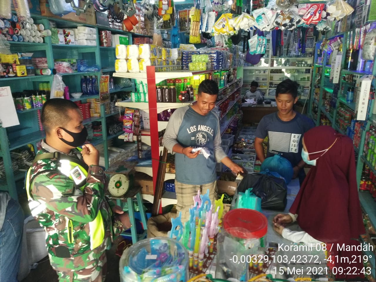 Serda Erik Arianto Sibarani Babinsa Koramil 08/Mandah Kodim 0314/Inhil Himbau Menghimbau Pemilik Toko di Suasana Lebaran