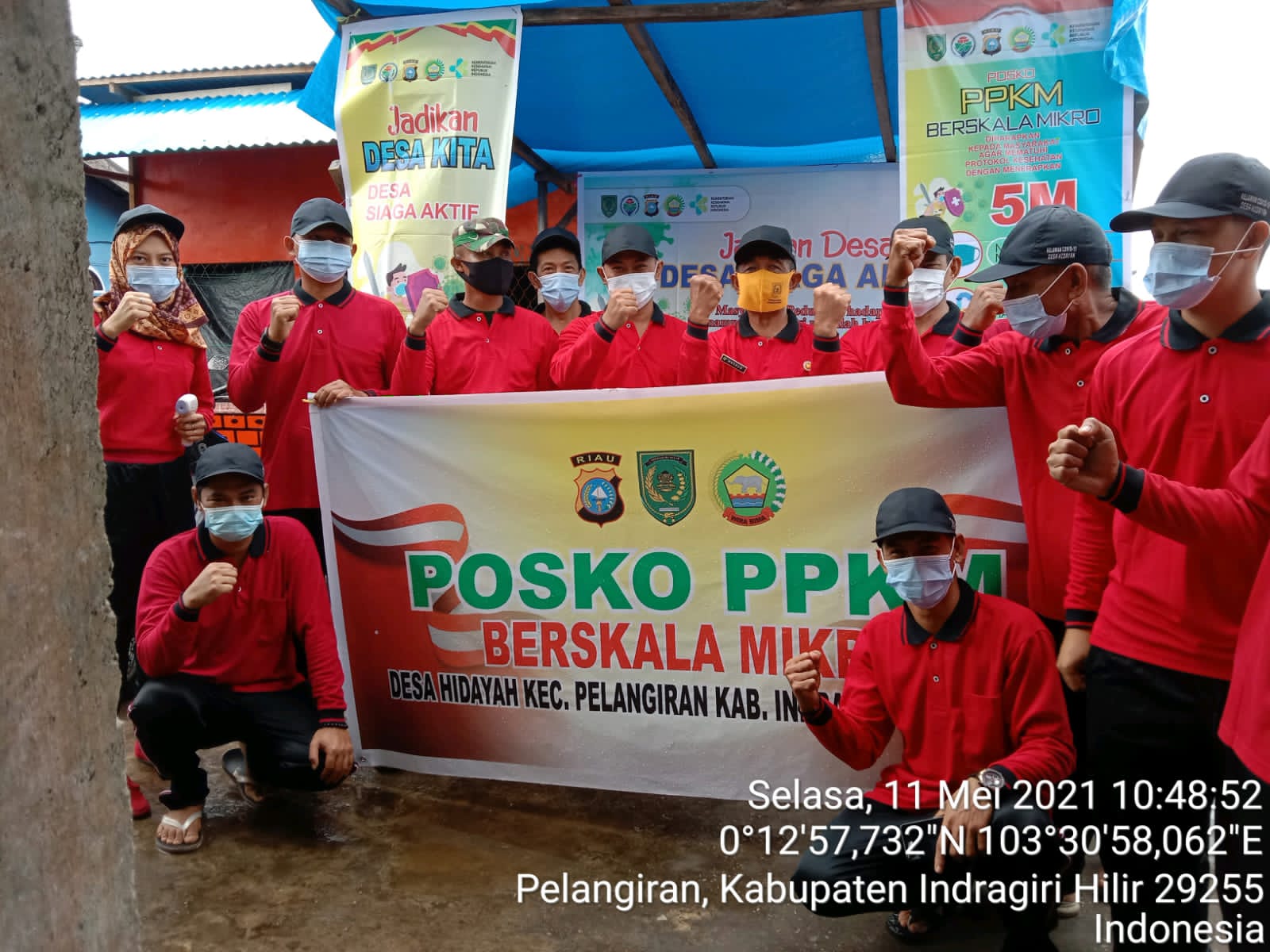 Kegaiatan Komsos dan gotong royong berupa pembuatan posko PPKM di pelabuhan pasar di Desa Hidayah Kecamatan Pelangiran ,Kab.Inhil