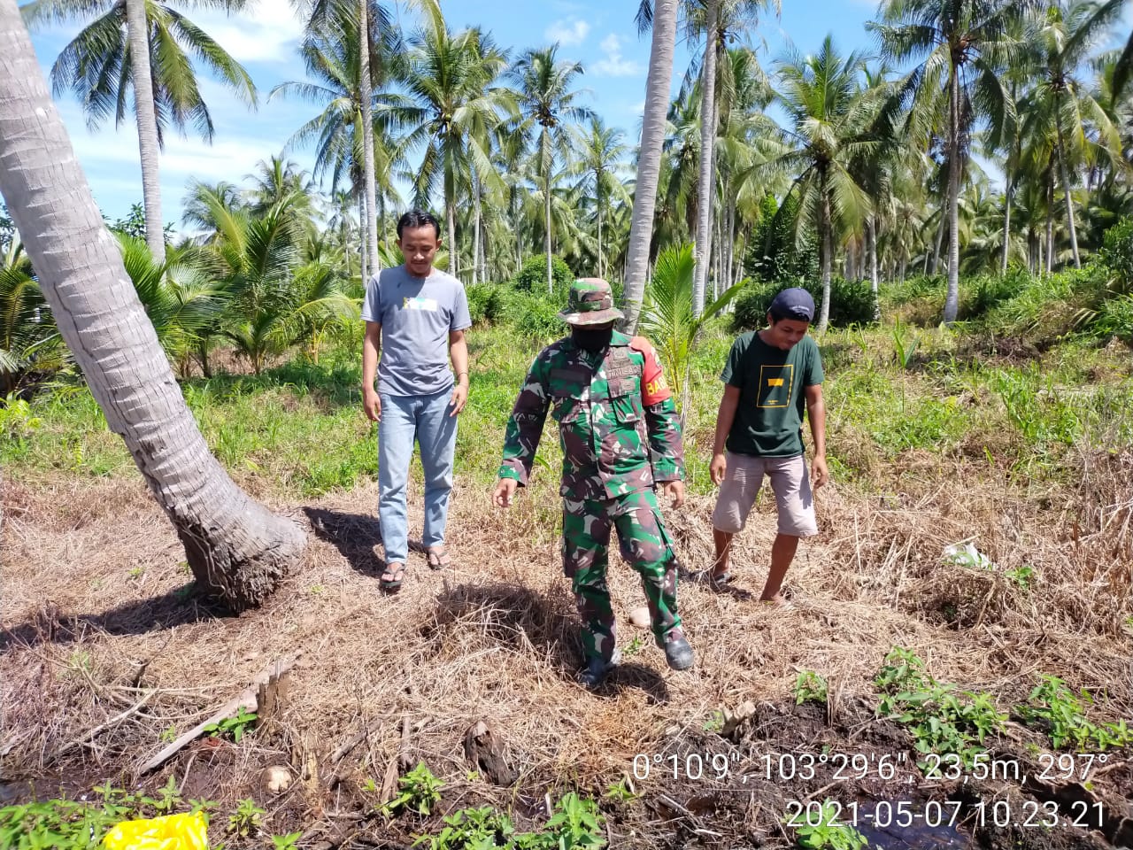 bersama dengan warga Babinsa mengoptimalkan patroli di lahan pertanian dan perkebunan dengan memonitoring wilayah yang dianggap rawan karhutlah