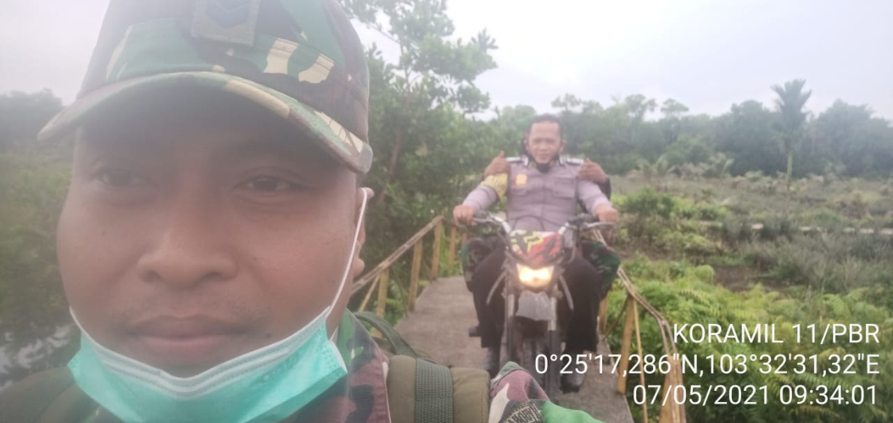 SERIBUPARITNEWS.COM, PULAUBURUNG - Serda Arif Darmawan Babinsa Koramil 11/Pulau Burung Kodim 0314/Inhil bersama babinkamtibmas Brigadir Gultom  Melaksanakan Patroli Karhutlah Bersama dan Sosialisasi di Lahan Perkebunan Milik Perusahaan dan warga Setempat Jumat (07/05/2021)