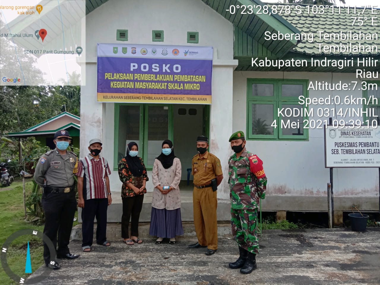 SERIBUPARITNEWS.COM,TEMBILAHAN - Sertu M.Yasin Babinsa Koramil 01/Tembilahan Kodim 0314/Inhil Bersama Babinkamtibmas Tinjau Posko PPKM  di Seberang Tembilahan Selatan Selasa (04/05/2021)