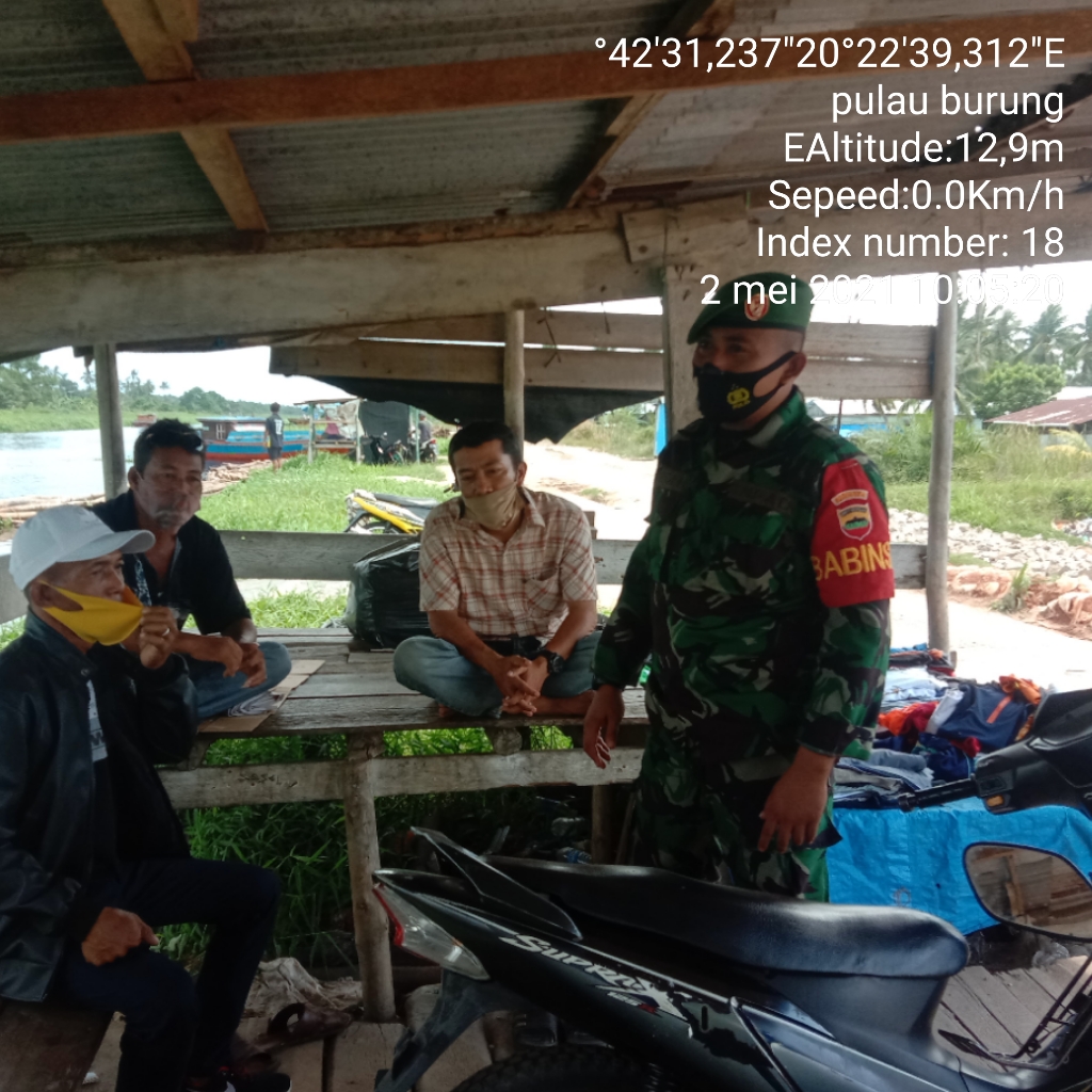SERIBUPARITNEWS.COM, PULAUBURUNG - Babinsa Koramil 11/Pulau Burung  Praka Dedi Hariyawan  melaksanakan kegiatan  Komsos bersama warga di desa pulau Burung Minggu (02/05/2021)