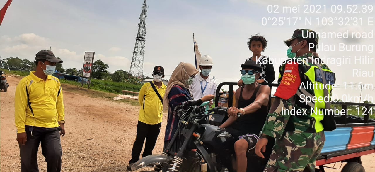 SERIBUPARITNEWS.COM, PULAUBURUNG - Sertu Arif Darmawan Babinsa Koramil 11/Pulau Burung Kodim 0314/Inhil bersama Gugus Tugas Covid-19 Kecamatan melaksanakan Kegiatan Penegakkan disiplin  Protokol Kesehatan Covid-19 Minggu (02/05/2021)