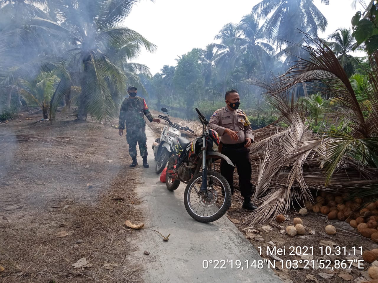 SERIBUPARITNEWS.COM, PULAUBURUNG - Babinsa Koramil 11/Pulau Burung Kodim 0314/Inhil  serda Supandi Jaya dan Babinkamtibmas Bripka gultom melaksanakan  patroli dan sosialisasi karhutla Sabtu  (01/05/2021)