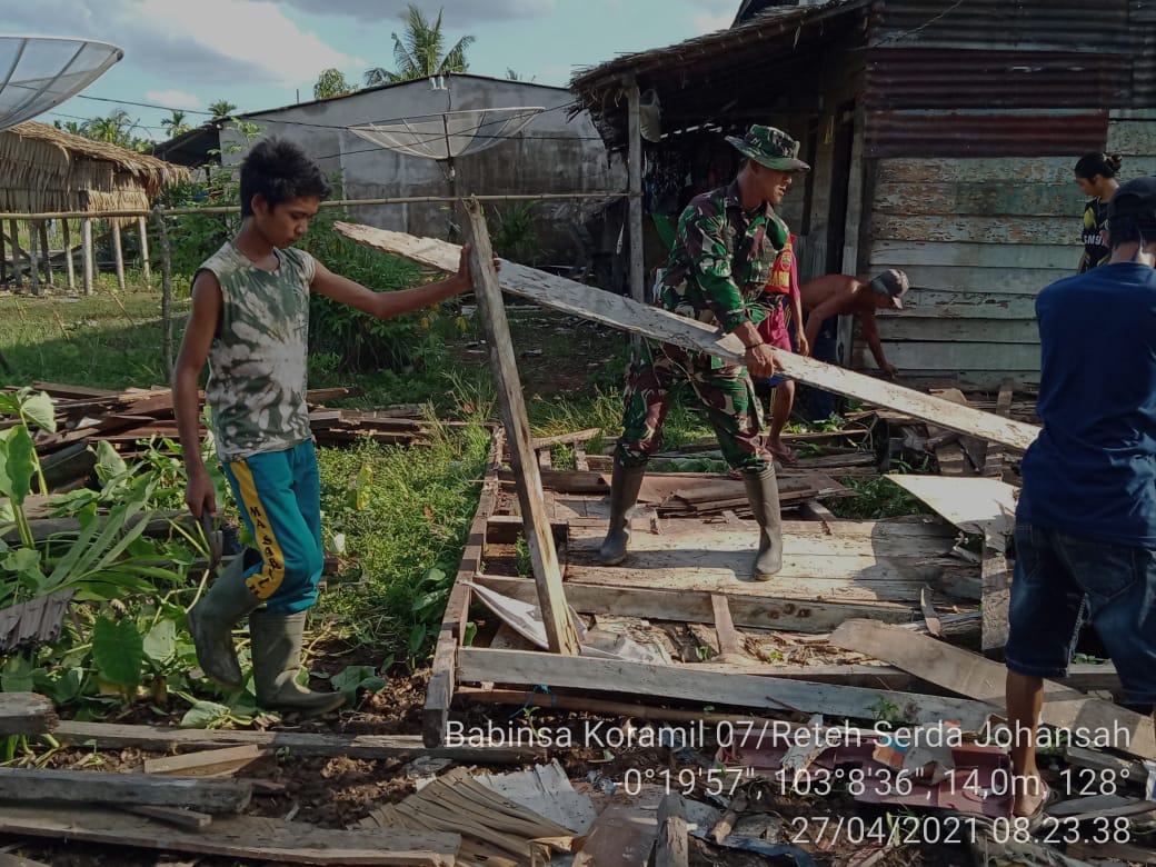 SERIBUPARITNEWS.COM,Reteh,"-Guna mewujudkan kemanunggalan TNI-dengan rakyat Bintara Pembina Desa (Babinsa) Babinsa Koramil 07/Reteh Kodim 0314/Inhil  melaksanakan kegiatan teritorial  membantu pengerjaan rumah Bpk Alwi  umur 50 thn di Jl. teras jaya Kec.Reteh