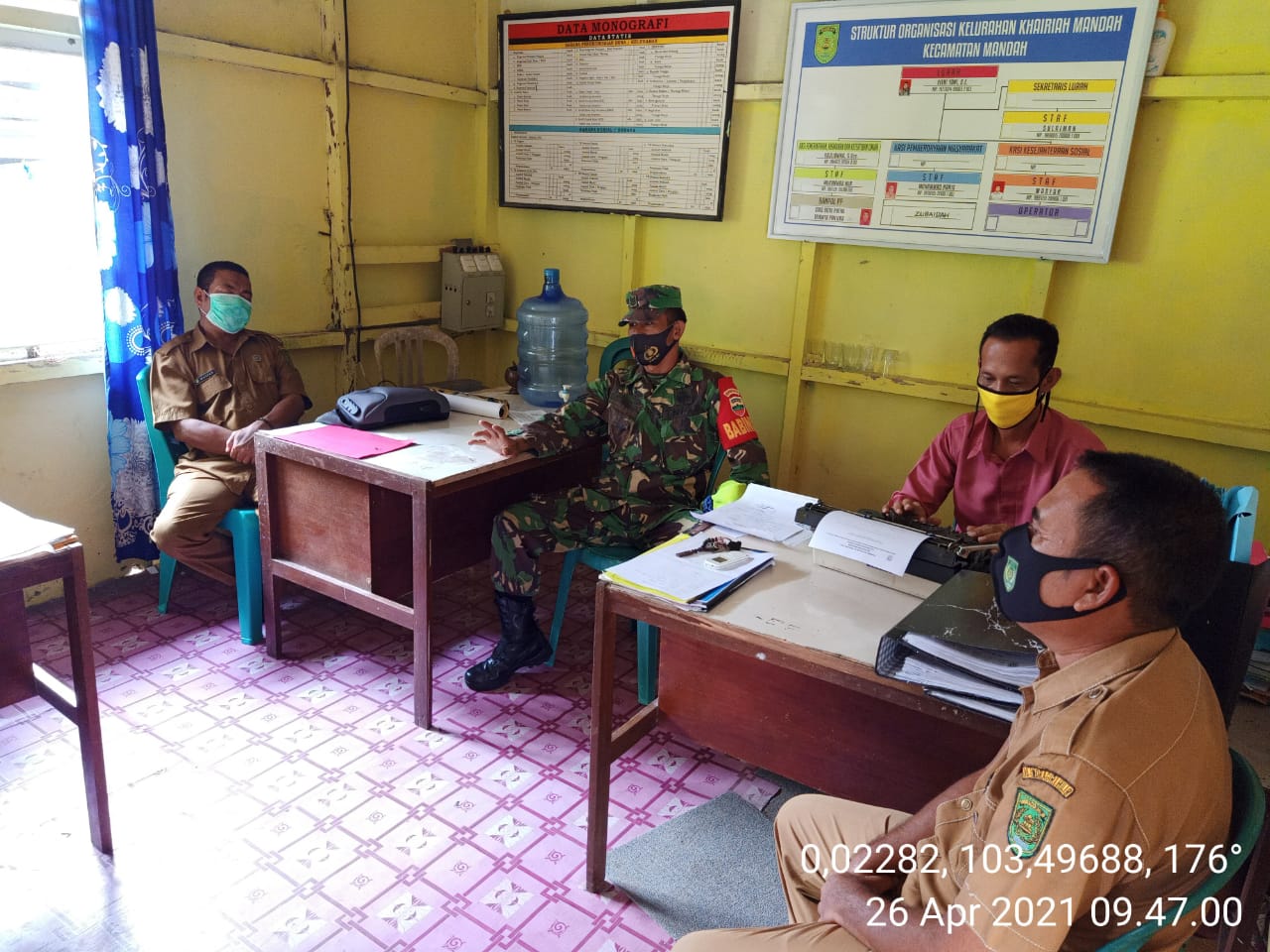 SERIBUPARITNEWS.COM, MANDAH - Babinsa Koramil 08/Mandah Serka H.Situmorang Melaksanakan kegiatan Komsos dengan staf Kelurahan Senin (24/6/04/2021)