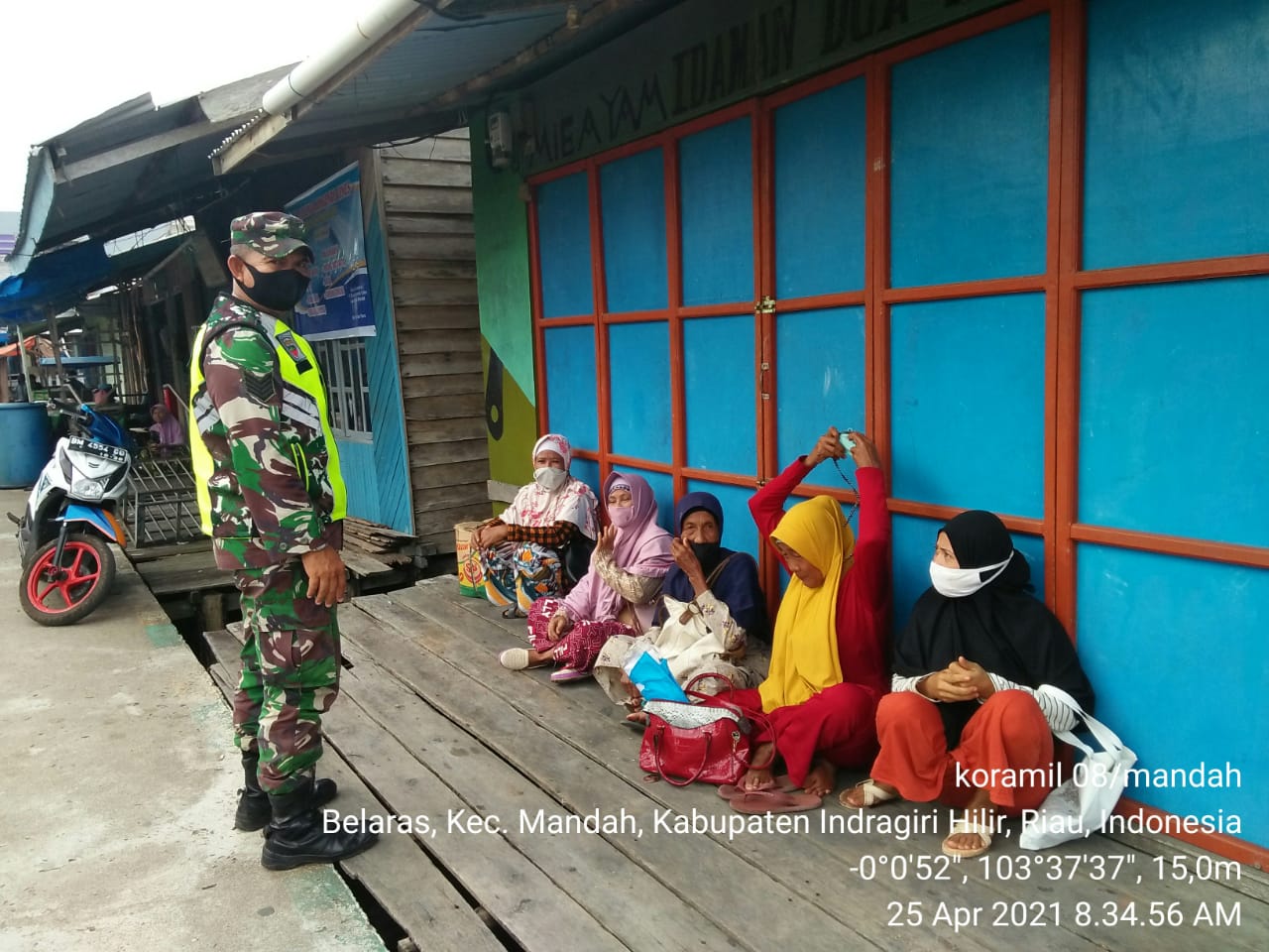 Babinsa memberikan pemahaman kepada ibu ibu tentang pentingnya menjaga jarak di saat pandemik ini