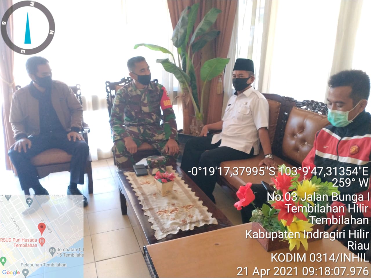 SERIBUPARITNEWS.COM, TEMBILAHAN -  Anggota Koramil 01/Tembilahan Kodim 0314/Inhil  Sertu Masri Melaksanakan Komsos bersama bapak Usman Staf Kepegawaian Dinas Sosial di Kantor Dinas Sosial Kel Tembilahan Hilir Kecamatam Tembilahan Kab Inhil Rabu (21/04/2021)