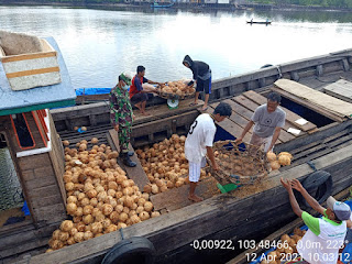 SERIBUPARITNEWS.COM,MANDAH - Serka H. Situmorang Babinsa Koramil 08/Mandah Kodim 0314/Inhil Melaksanakan Komunikasi Sosial bersama warga dan pengepul kelapa tentang harga hasil panen kelapa di Desa Igal Kecamatan Mandah Kab. Inhil Senin (11/04/2021)