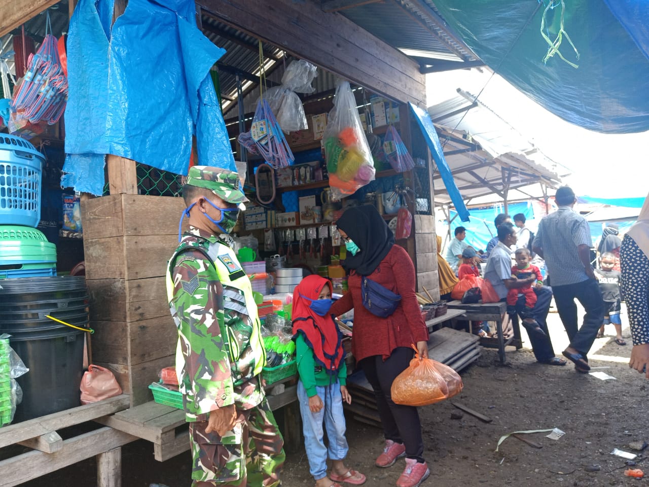 SERIBUPARITNEWS.COM,MANDAH - Serka H. Situmorang Babinsa Koramil 08/Mandah Kodim 0314/Inhil Melaksanakan Penegakan Disiplin Protokol Kesehatan di Pasar Kelurahan Khairiah Mandah Kecamatan Mandah Selasa (06/04/2021)