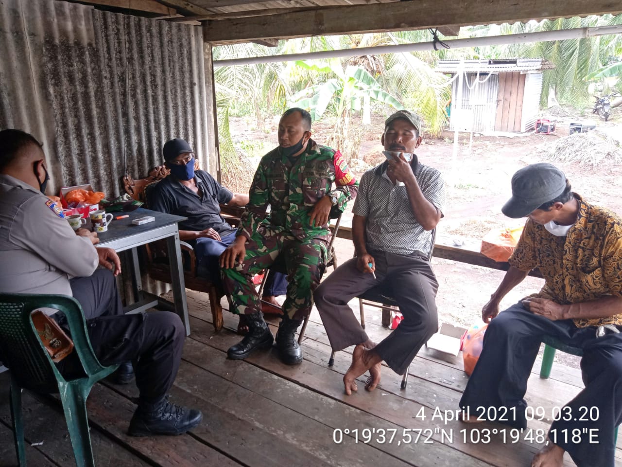 SERIBUPARITNEWS.COM, PULAUBURUNG - Babinsa Koramil 11/Pulau Burung Kodim 0314/Inhil  Serda Supandi Jaya  Melaksanakan kegiatan Komsos dengan Bhabinkamtibmas dan Petani Kelapa di Desa Ringin Jaya Kecamatan Pulau Burung Minggu (04/04/2021)