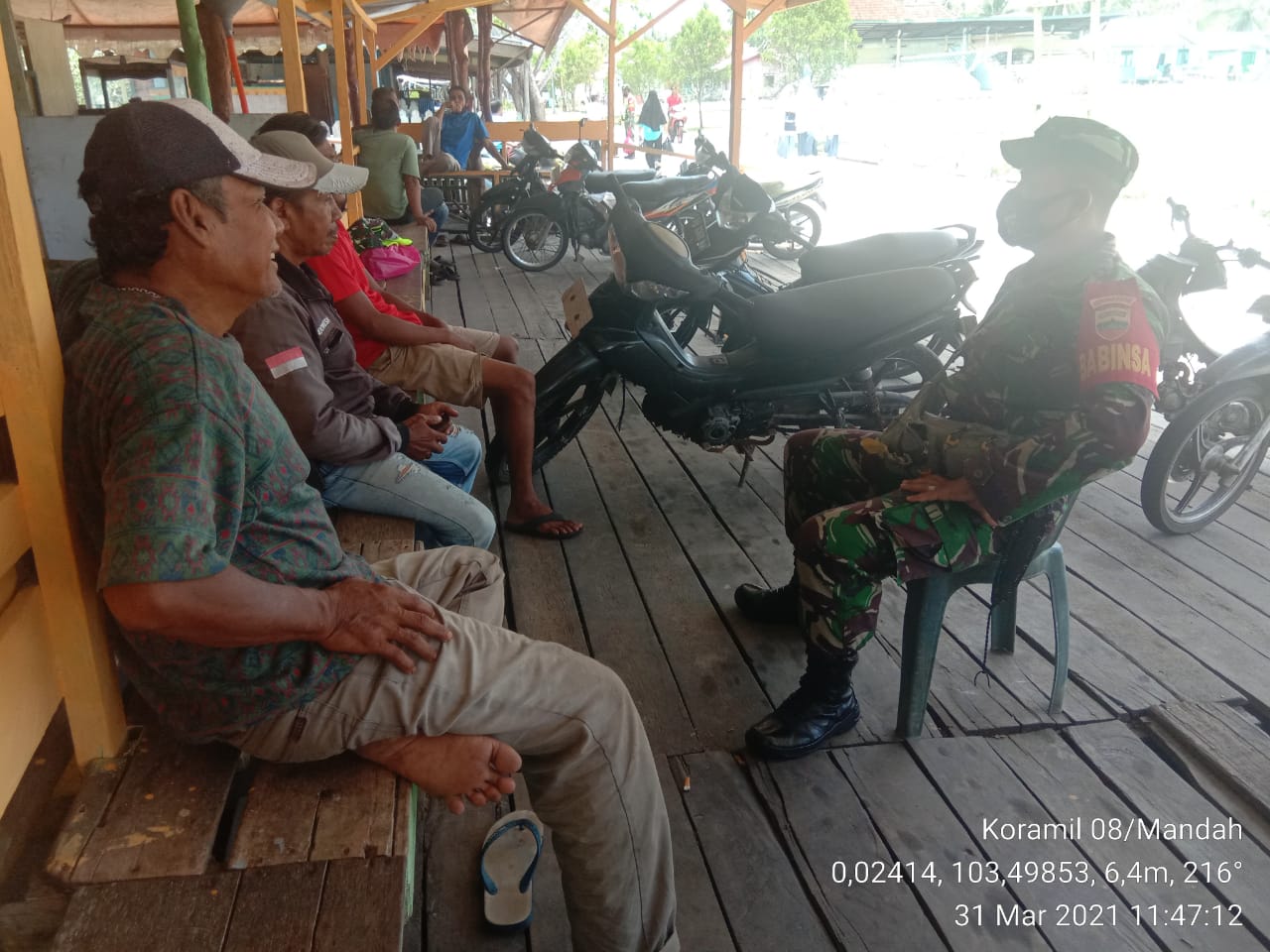 SERIBUPARITNEWS.COM, MANDAH - Serda Erik A. Sibarani Babinsa Koramil 05/Gaung Anak Serka Kodim 0314/Inhil Melaksanakan komsos di Sebuah pangkalan ojek di kelurahan Khairiah Mandah Kecamatan Mandah Rabu (31/03/2021)