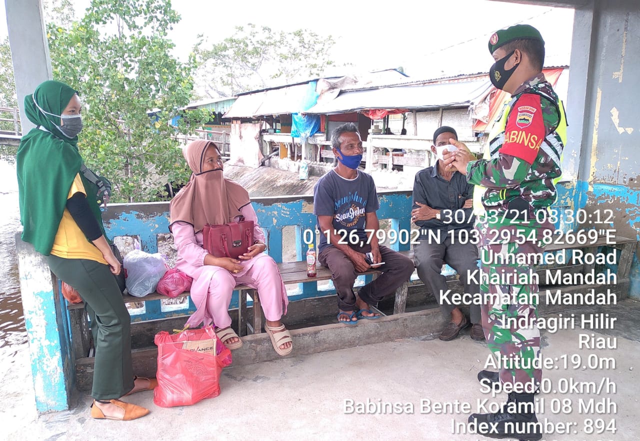 Praka Hendri Babinsa Koramil 08/Mandah Kodim 0314/Inhil Tegaskan Penegakkan Disiplin Masih Berlanjut yang disampaikan kepada calon penumpang yang sedang menunggu kapal di Pelabuhan Penumpang tersebut