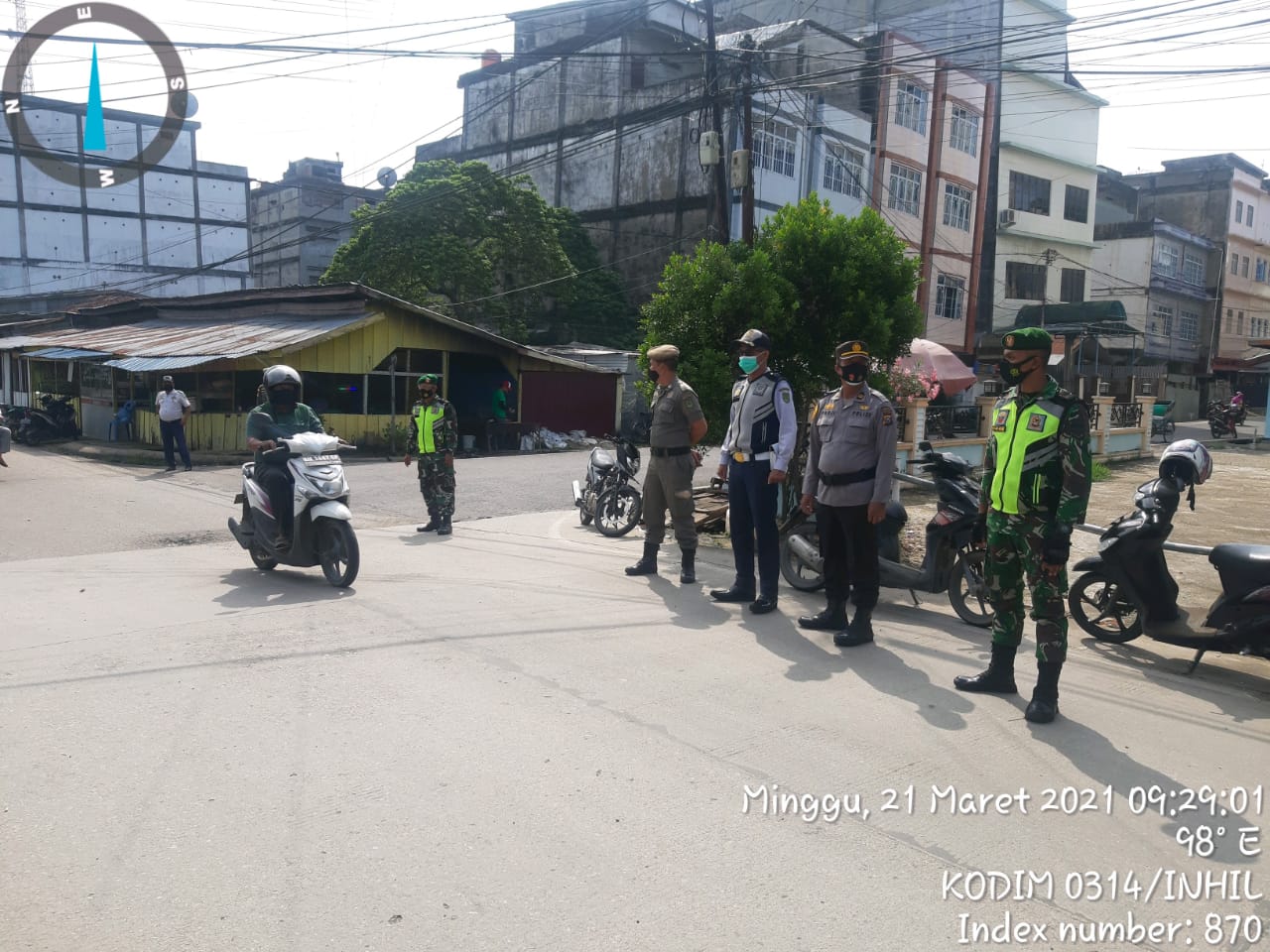 SERIBUPARITNEWS.COM, TEMBILAHAN - Dalam Penegakan disiplin pagi ini , Serda Surahman Babinsa Koramil 01/Tembilahan Kodim 0314/Inhil memfokuskan kegiatan di Simpang Empat Jalan H.Sadri Tembilahan Minggu (21/03/2021)