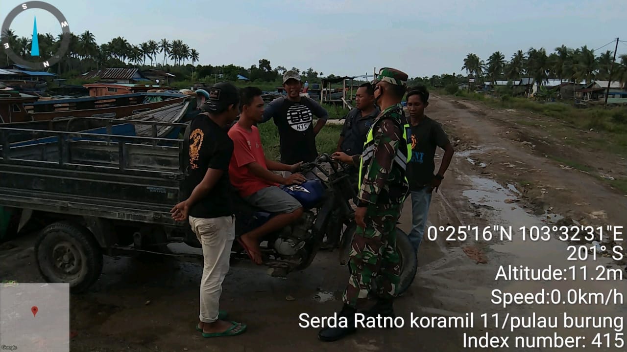 SERIBUPARITNEWS.COM,PULAUBURUNG - Babinsa Koramil 11/Pulau Burung Serda Ratno Melaksanakan Kegiatan Komsos Bersama masyarakat nelayan Pulau Burung Sabtu (20/03/2021)