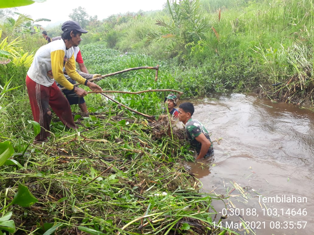 Serda Deni Sutrisno Babinsa Koramil 01/Tembilahan Bersama Warga bersihkan Aliran Parit Primer