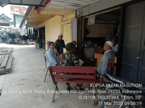 SERIBUPARITNEWS.COM, GAUNG ANAK SERKA - Di Hari Libur Nasional ini, Babinsa Koramil 05/Gaung Anak Serka Melaksanakan Penegakak disiplin di Pasar dan Pelabuhan Teluk Pinang Kamis (11/03/2021)