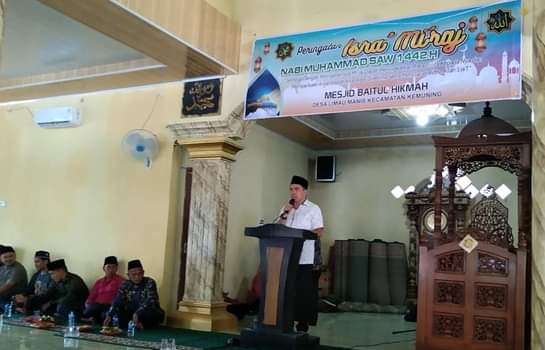 Dalam kesempatan tersebut Ketua DPRD Inhil ini mengisi Sambutannya dalam Peringatan Isra Mi'raj di Masjid Baitul Hikmah.
