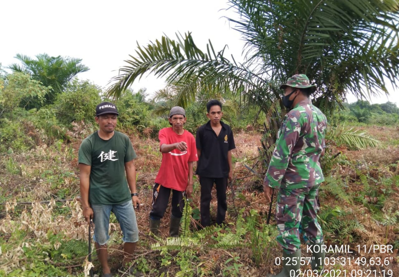 Kegiatan Babinsa lebih meninjau lokasi lebih instens kepada sosialisasi pencegahan Karhutlah kepada petani sawit di sekitar Suka jaya
