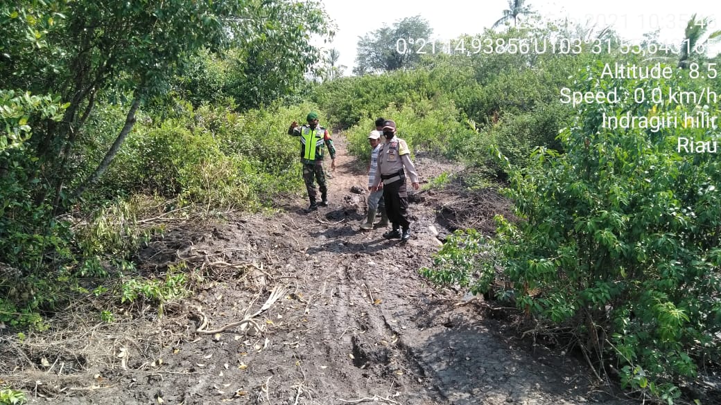 Babinsa Koramil 11/Pulau Burung Kodim 0314/Inhil Serda Z Pulungan Bersama Babinkamtibmas dan warga Melaksanakan Patroli Karhutlah di Desa Bangun Harjo