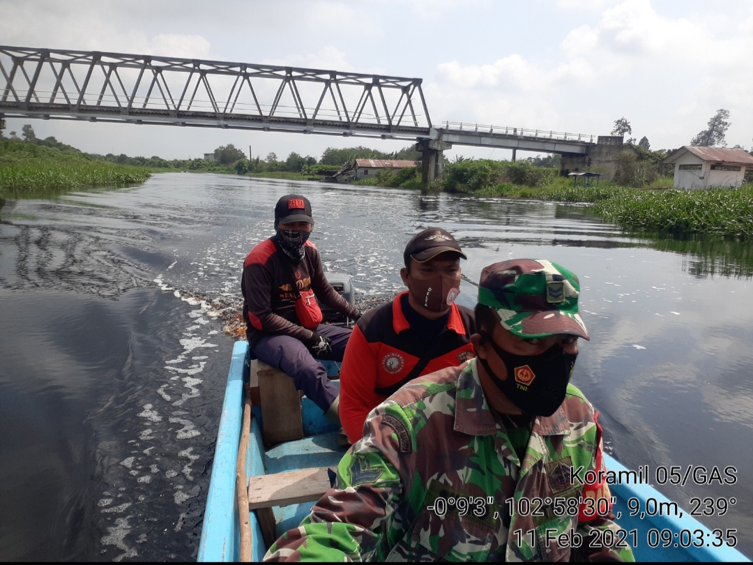 SERIBUPARITNEWS.COM, GAUNG - Sertu Sugeng Wahyudi Babinsa Gembira Koramil 05/Gas Kodim 0314/Inhil Masih melaksanakan  Patroli Karlahut Menyisiri Tepian Sungai Gaung Kecamatan Gaung Kamis   (11/02/2021)