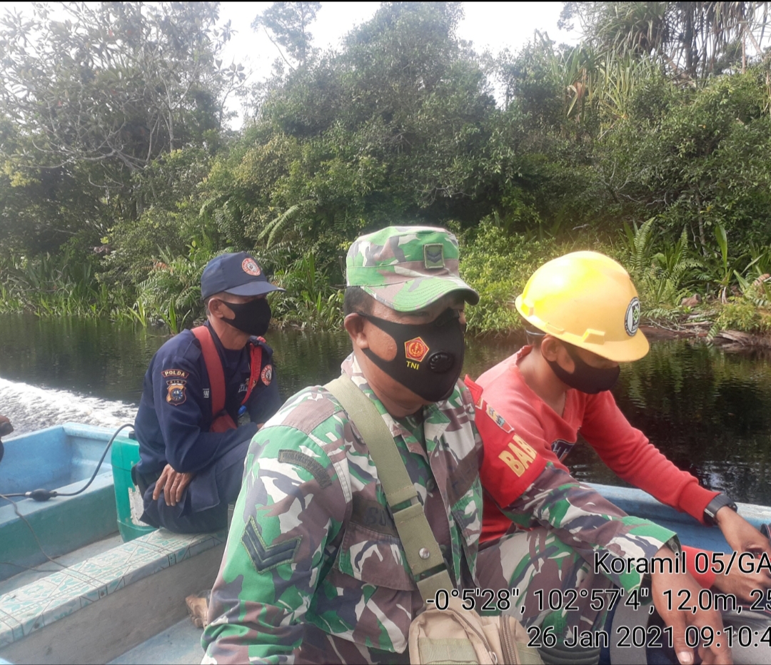 SERIBUPARITNEWS.COM, GAUNG ANAK SERKA - Babinsa Koramil 05 /Gas Kodim 0314/Inhil Sertu Sugeng Melaksanakan  Patroli Karlahut Menyisiri Seputaran Tepi Sungai Gaung Kecamatan Gaung Selasa (26/01/2021)