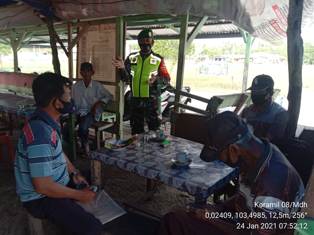 SERIBUPARITNEWS.COM, MANDAH - Babinsa Koramil 08/Mandah Koptu Adlis Melaksanakan Gakplin Prokes Covid -19 dengan masyarakat yang berada di warung kopi Kelurahan Kecamatan Mandah Kabupaten  Inhil Minggu (24/01/2021)