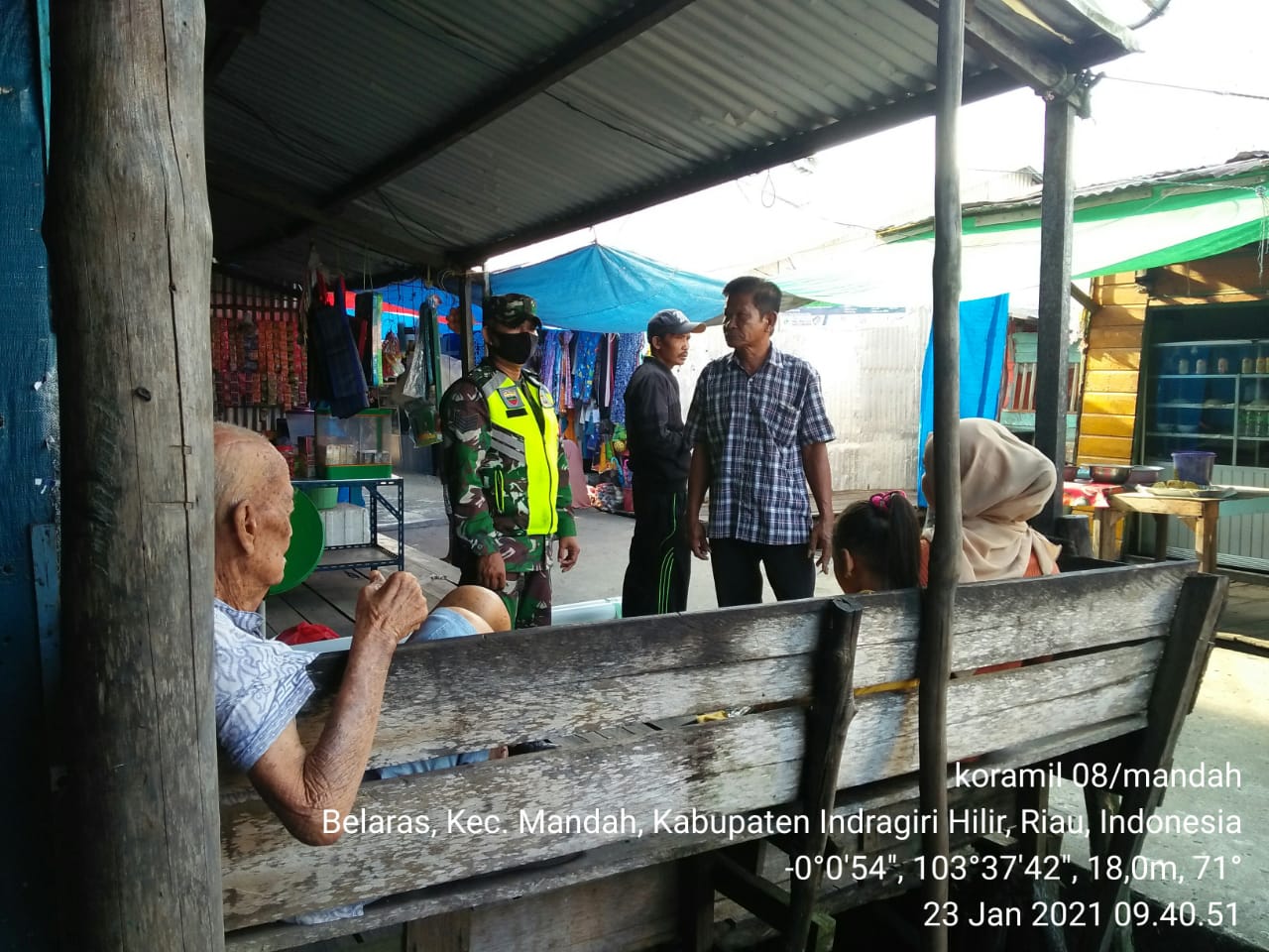 SERIBUPARITNEWS.COM, MANDAH -  Babinsa Koramil 08/Mandah  Desa Belaras Serma Darmansyah Melaksanakan sosialisasi himbauan Pencegahan penyebaran Virus Covid -19 bersama Warga di Desa Belaras Kecamatan Mandah Sabtu  (23/01/2021)