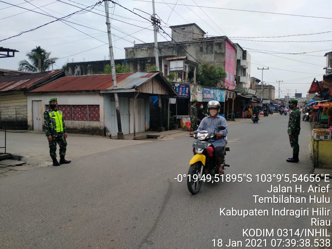 SERIBUPARITNEWS.COM,TEMBILAHAN - Sertu Masri Babinsa Koramil 01/Tembilahan Kodim 0314/Inhil Patroli Mobile di Jalan Sederhana dan Jalan Telaga Biru Senin (18/01/2021)