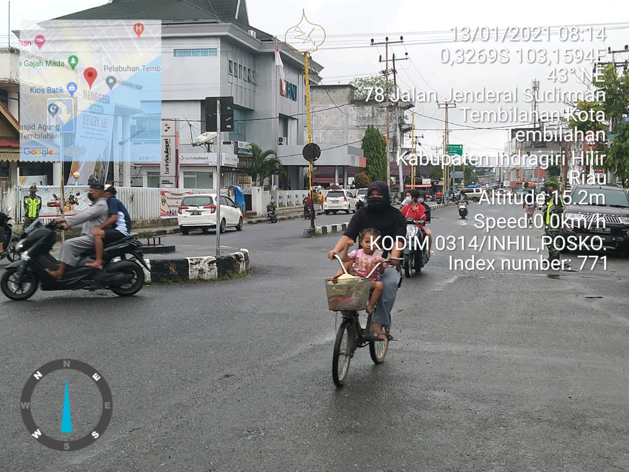 Patroli Mobile melibatkan Personil Kodim 0314/Inhil kegiatan berupa Penertiban pemakaian masker terhadap pengguna jalan dan Memberikan himbauan untuk selalu menjaga kebersihan dan selalu mencuci tangan.
