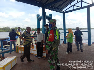SERIBUPARITNEWS.COM,MANDAH - Babinsa Serda Erik A. Sibarani melaksanakan Gakplin Prokes Covid -19 akhir tahun kepada para penumpang bod yang turun naik di Pelabuhan Sembuang Kelurahan Khairiah Mandah Kecamatan Mandah Kab. Inhil Rabu (30/12/2020)
