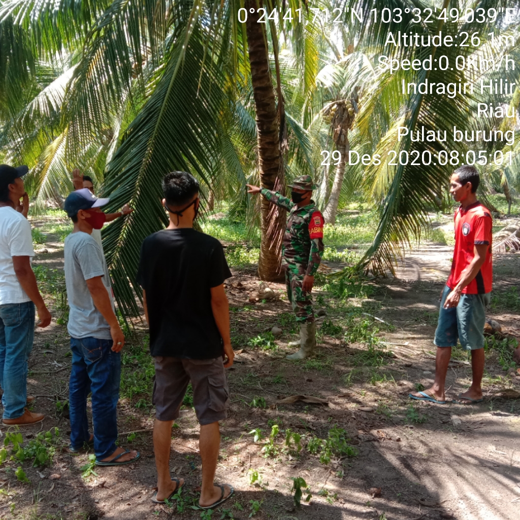 Patroli dilakukan di areal perkebunan kelapa milik masyarakat di  Desa Pulau Burung