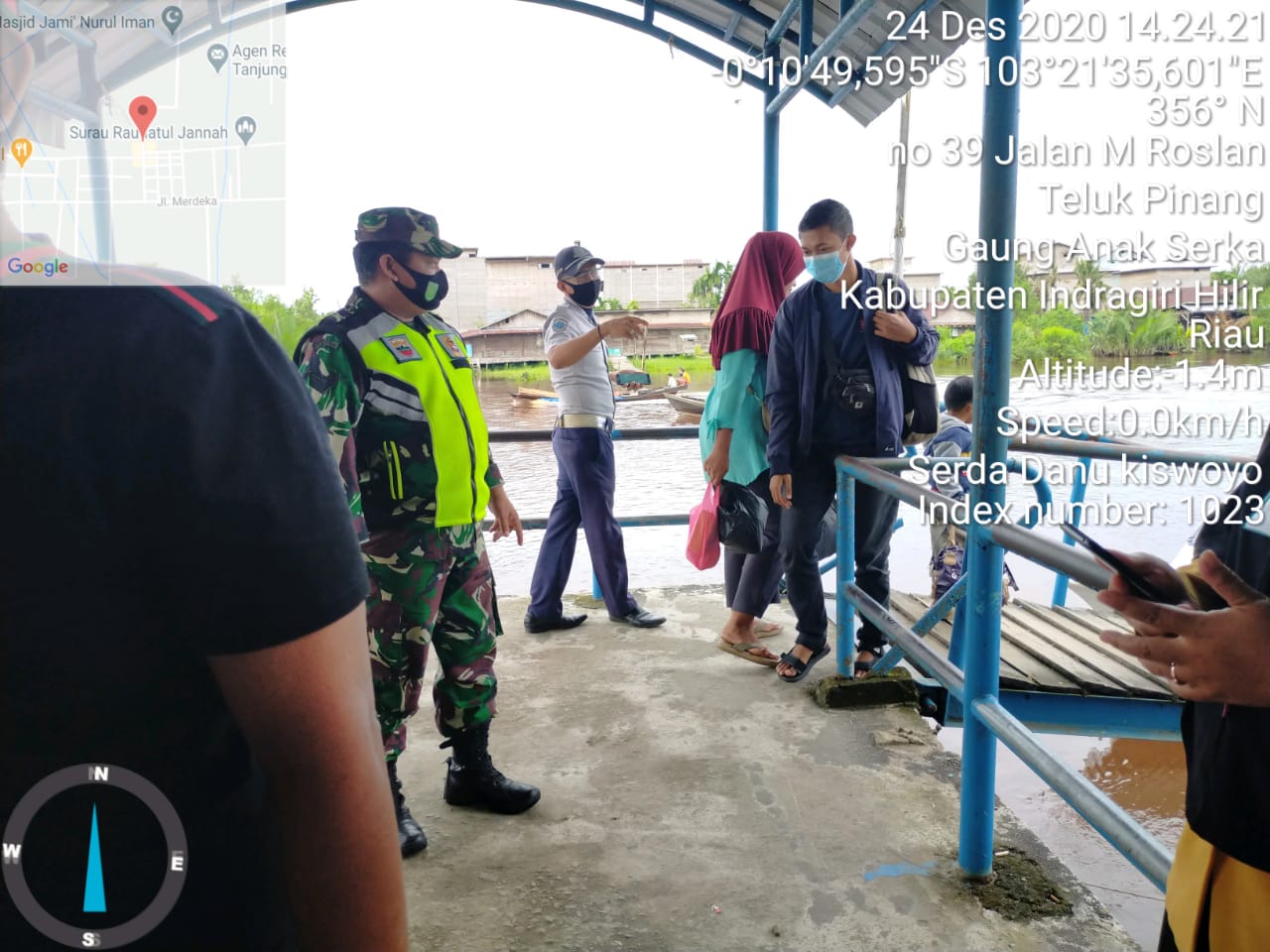 SERIBUPARITNEWS.COM, GAUNG ANAK SERKA - Sertu Danu Kiswoyo Babinsa Teluk Pinang Koramil 05/Gas Kodim 0314/Inhil Melaksanakan Penegakan Disiplin Protokoler Kesehatan New Normal Penanganan Covid 19 dan pengecekan suhu tubuh penumpang Speed boad yang datang dari Batam di Pelabuhan  Kelurahan Teluk Pinang Kecamatan  Gaung Anak Serka  Kab.Inhil Kamis (24/12/2020)