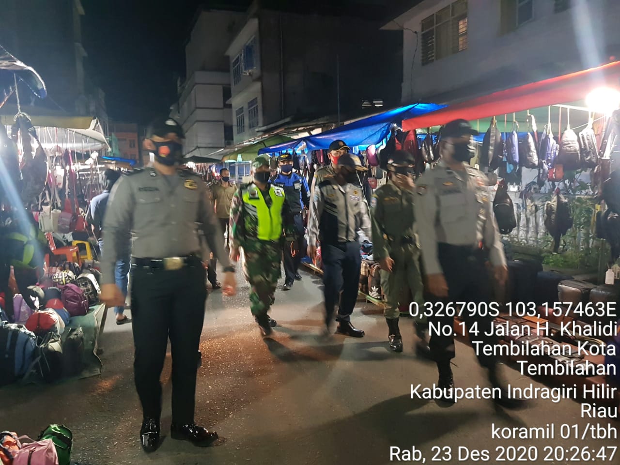 Serda Adri Candra Babinsa Koramil 01/Tembilahan Kodim 0314/Inhil bersama petugas yang lainnya menghimbau pengguna jalan tetap mematuhi protokol kesehatan, Memakai helm dan melengkapi surat surat