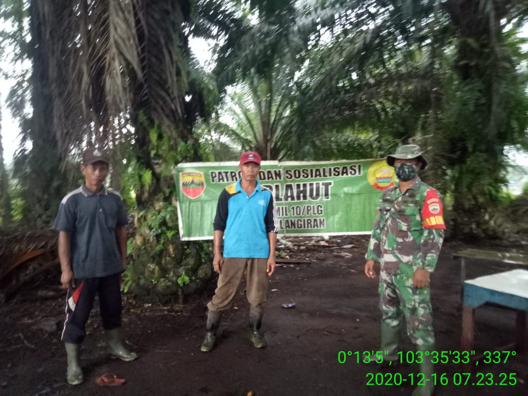 Bersama masyarakat Koptu Candra melakukan patroli karlahut di areal Kelapa Sawit perusahaan milik perusahaan dan masyarakat