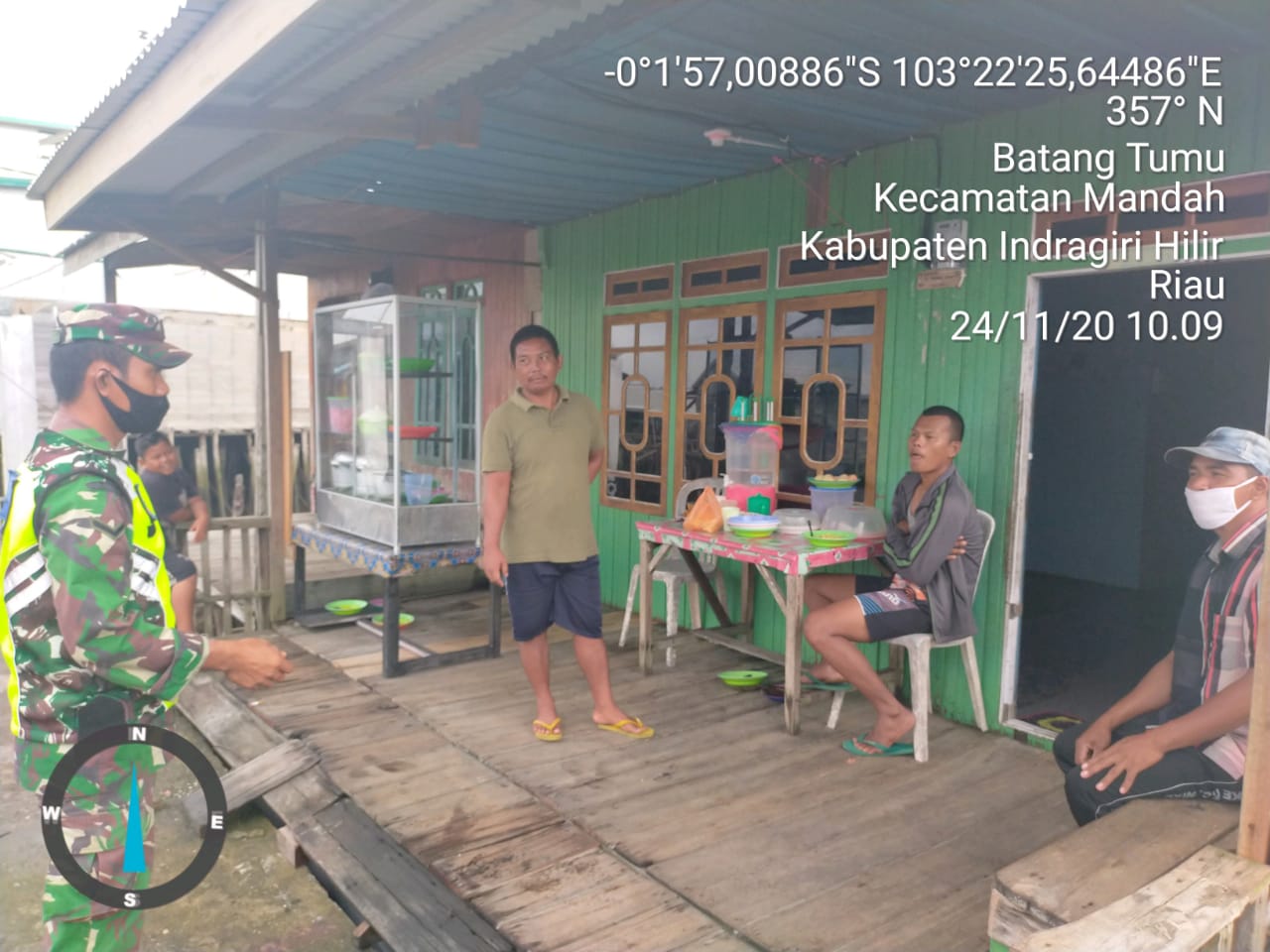 SERIBUPARITNEWS.COM, MANDAH - Babinsa Batang Tumu Koramil 08/Mandah Kodim 0314/Inhil Serda Tulus Lumban Gaol Melaksanakan Penegakan Disiplin Protokol Kesehatan Covid -19 kepada pemilik warung serta warga pengunjung ke warung di Pasar Tokolan Desa Batang Tumu Kecamatan Mandah Selasa (24/11/2020)