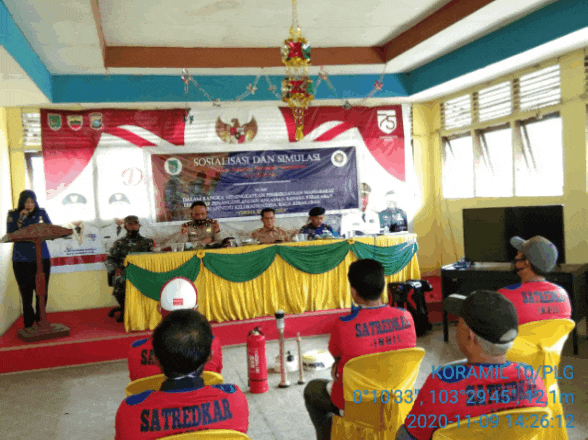 SERIBUPARITNEWS.COM, PELANGIRAN - Dinas Pemadam Kebakaran Kabupaten Indragiri Hilir mengadakan Sosialisasi pemadam kebakaran dalam rangka meningkatkan pemberdayaan masyarakat terhadap penanggulangan ancaman kebakaran dan menuju kelurahan dan desa siaga kebakaran bertempat di aula kantor camat pelangiran Senin (09/11/2020) pukul 14.00 wib