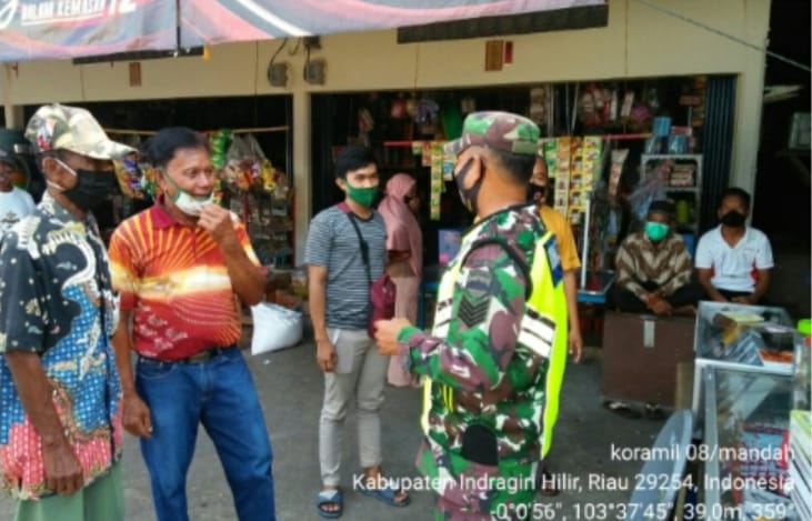 SERIBUPARITNEWS.COM, MANDAH - Babinsa Belaras Koramil 08/Mandah Kodim 0314/Inhil Serma Darmansyah melaksanakan penegakkan disiplin protokol kesehatan Minggu (01/11/2020)